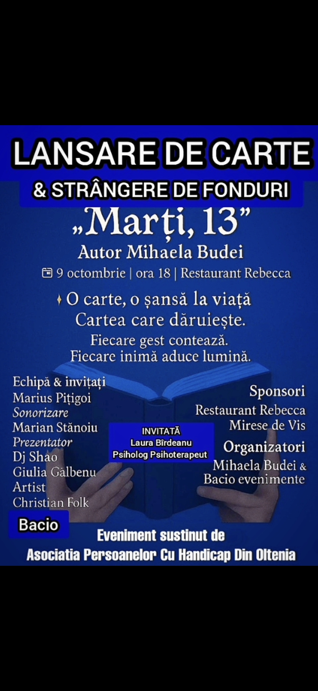 Pe lângă lansarea propriu-zisă, participanții vor putea asculta fragmente din volum și vor avea ocazia să asiste la intervenții susținute de invitați speciali, printre care un medic psiholog și artiști locali.