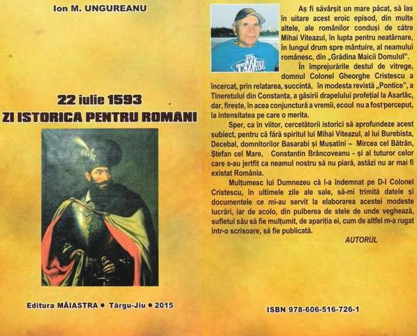 Iubitorii neamului românesc şi ai gliei străbune, sunt invitaţi la lansarea acestei cărţi, sâmbătă, 20 iunie 2015, orele 10.00, în sala Muzeului Judeţean „Alexandru Ştefulescu”, Gorj. Cartea descrie prima luptă(necunoscută) a primului reîntregitor de neam şi ţară, Mihai Viteazul, cu oastea turcă, la asarlâc, în Dobrogea, înaintea urcării pe tronul Ţării Româneşti.