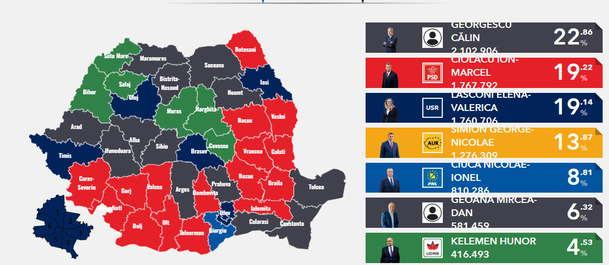 Candidatul independent Călin Georgescu are peste 2 milioane de voturi după ce au fost numărate peste 99,61% din procesele verbale.