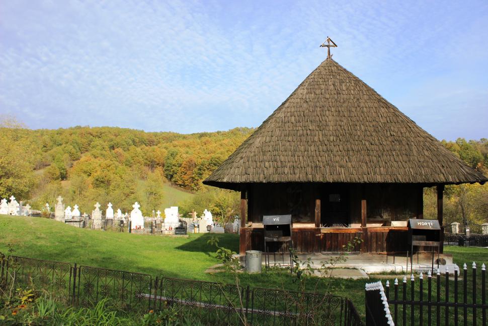 Biserica, construită din lemn, în formă de navă, fără turlă, acoperită cu șindrilă, este pictată în stil bizantin, cu picturi în ulei pe pereți și la intrare. În curtea bisericii se află un cimitir și clopotnița.