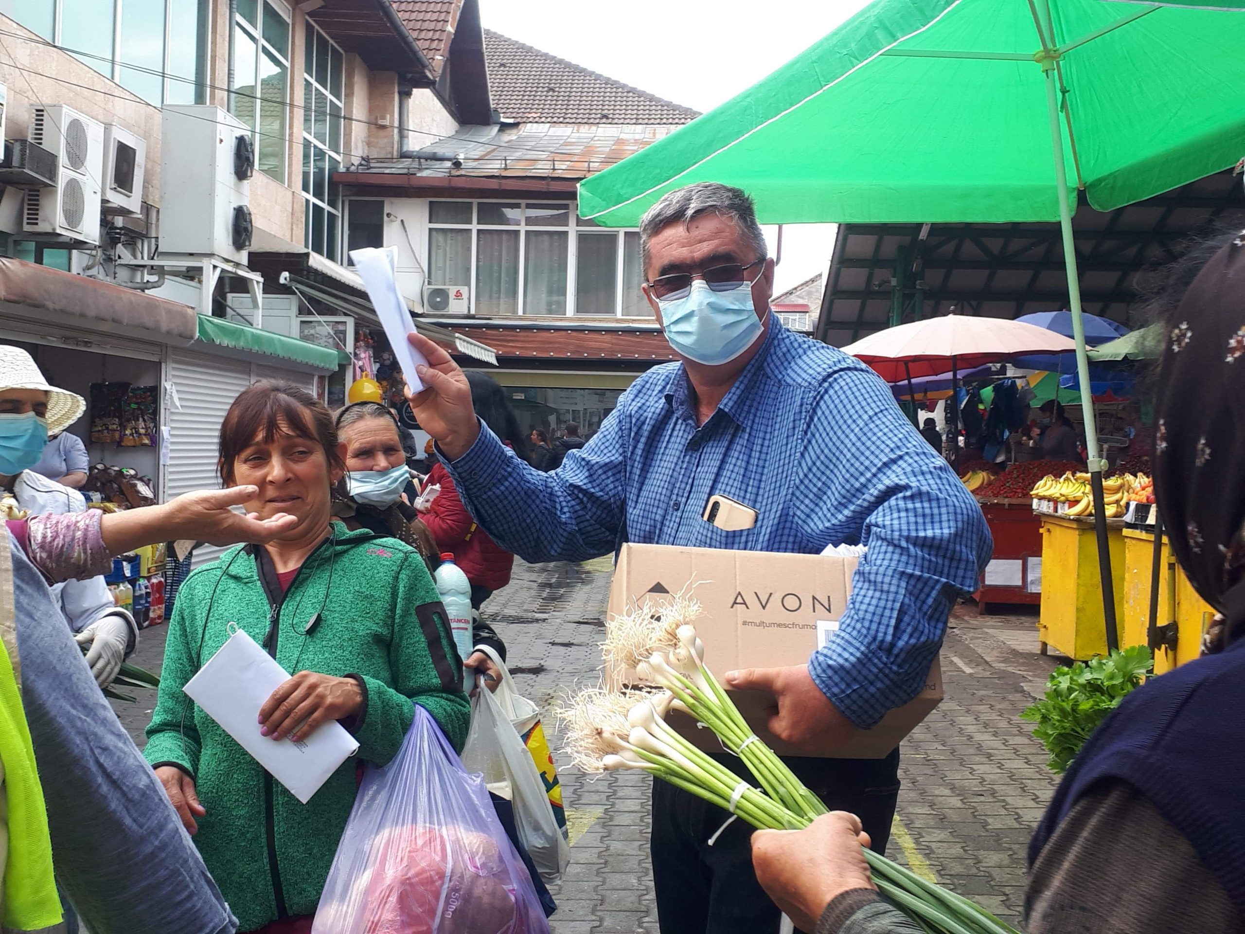 Mai exact, pentru un maxim de igienă, liderul PER a pus câte două măști într-un plic, oferind gratuit protecție pentru o zi de lucru vânzătorilor, și siguranță cumpărătorilor din Târgu-Jiu.