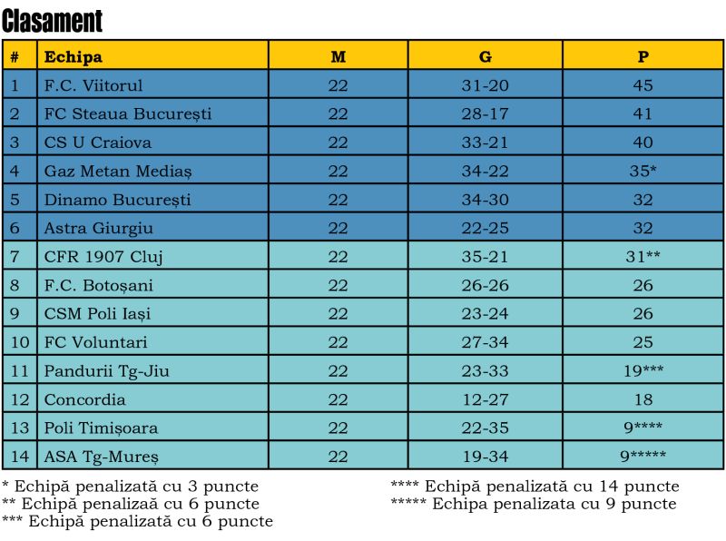 Deşi Viitorul este echipa care se află în momentul de faţă pe primul loc în Liga 1, cu 4 puncte peste Steaua, formaţia condusă de Gheorghe Hagi nu este creditată de casele de pariuri cu prima şansă la cucerirea campionatului. Ba mai mult, echipa patronată de Gigi Becali pare favorită certă pe hârtie. Deşi nu a reuşit decât un rezultat de egalitate în primul meci, la CFR Cluj, Steaua are cote ce variază între 1.3 şi 1.4 că va lua titlu. Un succes al Universităţii Craiova ar fi considerat o surpriză de proporţii. Cei care vor miza pe formaţia din Bănie vor câştiga de 8 ori mai mulţi bani decât pariază. Deşi abia a intrat în play-off, Astra Giurgiu, ultima campioană a României, este văzută cu a patra şansă la campionat. Totuşi, suporterii trebuie să fie foarte optimişti, pentru că o victorie a formaţiei lui Şumudică în acest sezon are cotă 21.00. În ceea ce priveşte rămânerea în primul eşalon fotbalistic, cei care fac pariurile sunt rezervaţi. Cel mai probabil se aşteaptă configuraţia finală a zonei play-out pentru a estima corect şansele participantelor. Cinci echipe au fost depunctate în actuala ediţie de campionat, iar formaţia din Timişoara încă speră că va recupera handicapul cu care a început actualul sezon.