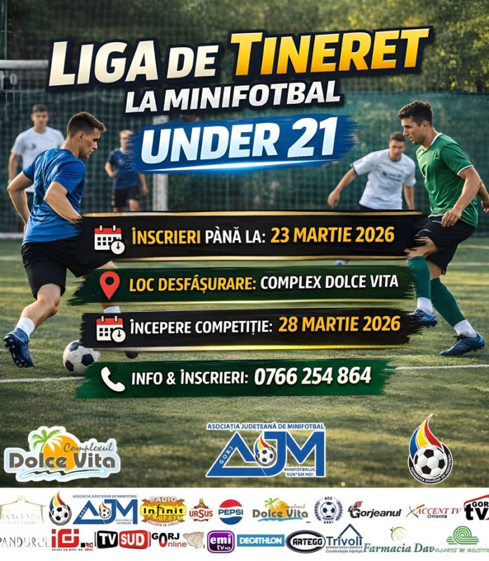 Asociația Județeană de Minifotbal Gorj organizează, începând din 28 martie, Liga de tineret la minifotbal Under 21, o întrecere sportivă dedicată jucătorilor de minifotbal născuți după data de 31 decembrie 2004 (vârstă minima 14 ani).