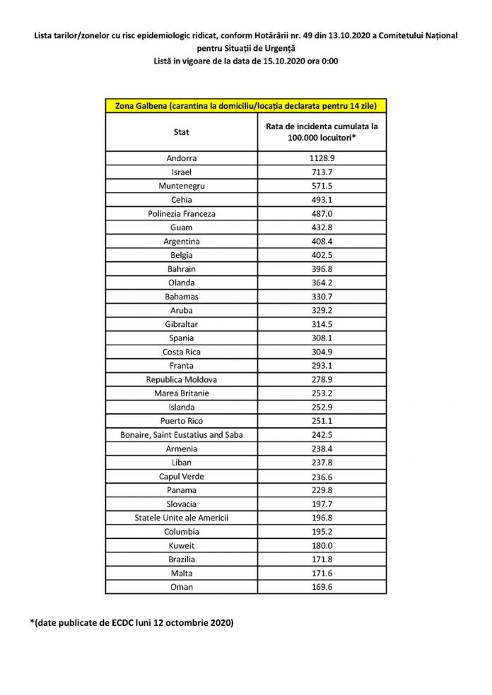 Lista actualizată a țărilor cu risc epidemiologic ridicat