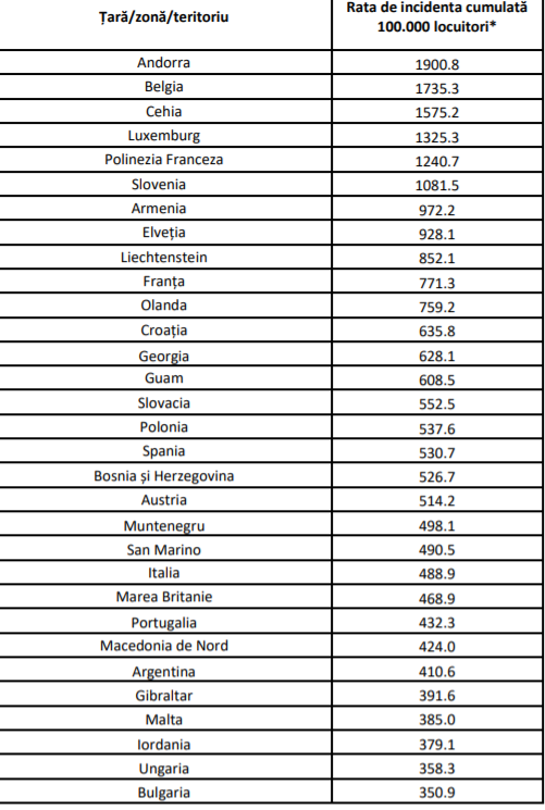 Comitetul Național pentru Situații de Urgență a aprobat luni seară lista ţărilor cu risc epidemiologic ridicat pentru care se instituie măsura carantinei de 14 zile asupra persoanelor care sosesc în România din acestea. Lista intră în vigoare de astăzi, iar aceasta include 31 de state.