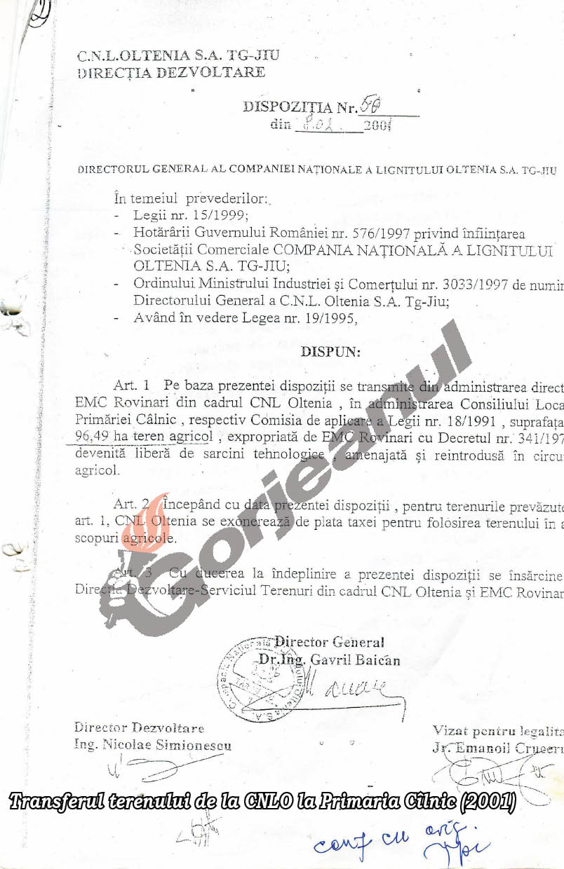 “Aştept ca cei de la CEO să îmi comunice prin intermediul ziarului cât a plătit Complexul Energetic Rovinari pentru recuperarea, în 2007, celor peste 100 de hectare, Primăriei Cîlnic. Asta mai ales că terenul în cauză a fost reamenajat de către autorităţi din bani publici”, a completat Nebel.