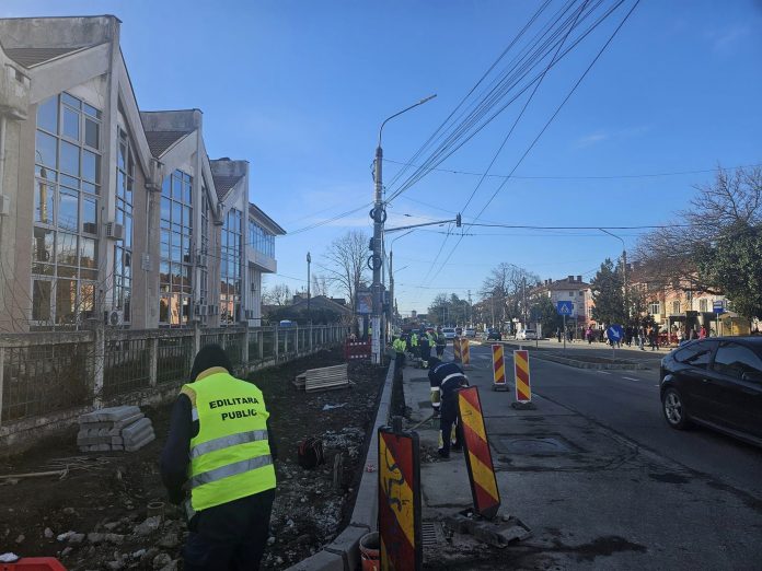 Edilitara Târgu Jiu continuă lucrările de reparații curente pe Bulevardul Ecaterina Teodoroiu, tronsonul dintre Casa de Cultură și intersecția cu Aleea Macului.