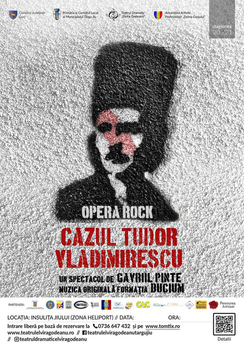 Ciudate timpuri, cu orizontul sprijinit în cârje, cu cerul negru și fără stele în viul miezului de noapte! Vremuri apăsate de-o liniște malefică aducătoare de vorbe gâtuite samavolnic spre a nu putea fi înțelese de toată lumea. .. Mi-e greu să scriu despre ultima producție-mamut, (ce n-a văzut Parisul!) a teatrului de la Târgu-Jiu, dramatic nu doar pe frontispiciu, montare prilejuită de bicentenarul Revoluției lui Tudor Vladimirescu, sărbătoare cu ștaif național, arondată „după buget” orașului nostru și care, pe bună dreptate, a aprins imaginația multora, de la noi și de aiurea. Și câte și mai câte nu s-au făcut la o așa ocazie… S-au tras la bancă bani de hârtie și monede jubiliare, s-au fabricat cocarde și decorații, s-au presat busturi cu agățători personalizate pentru gardurile instituțiilor interesate, s-au ținut alocuțiuni scurte, s-a bătut și pas de defilare, s-au tipărit diplome cu dedicație și cărți pentru toate gusturile, s-au ținut adunări populare ușor restricționate pandemic, a cântat și fanfara. Câte nu s-au făcut!… S-au făcut de toate, cum s-ar zice, pe bani publici și din cauza asta au apărut diverși contabili cârcotași, mulți socotitori de duzină, chiar și condeeri plătiți cu ora… Și s-a bătut toba și s-a făcut mult, poate prea mult caz. Și-n contextul astfel creat, Cazul Tudor Vladimirescu nu e decât… cireașa de pe tort.