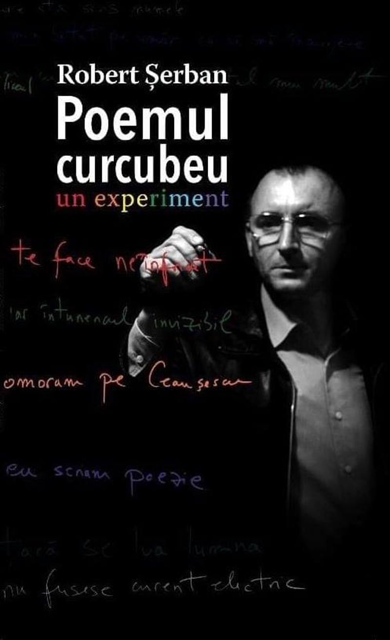 Nu degeaba, absolvent al unei facultăți de construcții, s-a specializat la zi și în domeniul artelor la una din secțiile de profil ale Universității timișorene… Tot ce a reușit să scrie până la sfârșitul programului a fost așezat generic sub un titlu inspirat, interpelând orgolios, cu luciditate cromatică, eventualii cititori, obligându-i la reflecție – Poemul curcubeu, un experiment –, o aventură spirituală cu vădită tentă impresionistă prin vibrația oraculară, deopotrivă lirică, dominată ispitit de prezența culorii. Într-o singură pagină, lungă de… 15 metri, și-a povestit cât a putut de cinstit propriile lui „nopți cu lună pe Oceanul Atlantic”, scornind cu eleganță magia amintirilor copilăriei și a unei adolescențe nu lipsită de unele rectificări biografice, intrând apoi curajos în ancadramentul sigur al unei vieți ce și-a propus să refuze categoric, încă de la începuturile ei, liniaritatea „realităților noastre” și un anume partizanat local. Toate întâmplările antologate cu succes doar pe o singură pagină neașteptat de lungă și în afara oricăror canoane și rețete, mărturisesc despre începutul frumos colorat al unei vieți așternute la vedere pe hârtia de ziar și demonstrează că „ziua de lucru” a poetului se cuvine a fi înțeleasă în deplina-i complexitate de nuanțe și idei, unite cu inteligentă sensibilitate într-o formă absolută, elaborată nu fără o anume voluptate intelectuală. Spirit liberal, Robert Șerban își asumă regia unui spectacol responsabil, încerându-se suprarealist într-o întreprindere aparent lipsită de mister prin prezența angelică a unui public nestatornic și care, fiind doar în trecere, izbutește să-și dea cu părerea „în cunoștință de cauză” și să empatizeze sincer și credincios cu poetul.