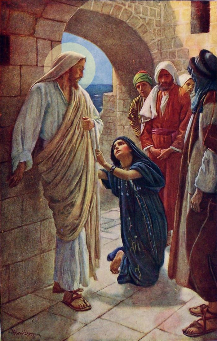 Prin urmare, Mântuitorul Hristos se afla în părţile Tirului şi ale Sidonului, într-un ţinut locuit de cananiţi. Aici, în acest ţinut, o «femeie cananeeancă», auzind şi ea de faptele minunate ale Mântuitorului Hristos, vine cu convingerea că fiica ei, «cumplit chinuită de un diavol», în sfârşit, va fi tămăduită. Avea convingerea că Cel căruia I se adresa cu cuvintele «Fiul lui David» este Mesia, dar în acelaşi timp, se gândea în sine, că păgână sau idolatră fiind, nu era vrednică de a-I veni în faţă şi a-I cere milă. De aceea, încă de departe fiind, cu multă durere în suflet pentru suferinţa fiicei sale, dar şi cu umilinţă pentru starea de decădere morală faţă de Dumnezeu, femeia Îi cere Mântuitorului, strigând: «Miluieşte-mă, Doamne, Fiul lui David! Fiica mea este rău chinuită de un diavol» (Matei 15, 22). Să reţinem faptul că Mântuitorul cunoştea foarte bine situaţia acestei femei şi, cu toate acestea, intenţionat, de parcă nici măcar n-ar fi auzit-o, nu-i dă nici un răspuns. Mântuitorul i se arată femeii rece şi distant, tocmai pentru a le arăta acum ucenicilor, în fapt concret, cât de greşită putea fi atitudinea dispreţuitoare a evreilor faţă de neamurile păgâne. Femeia, însă, departe de a-şi pierde cumpătul, se apropie tot mai mult de Mântuitorul, continuând să-I ceară mila Sa. Până şi apostolii, care dacă la început erau iritaţi de strigătul şi insistenţa femeii, în cele din urmă rămân impresionaţi de durerea acesteia şi acum îi cer Mântuitorului: «Slobozeşte-o, căci strigă în urma noastră» (Matei 15, 23). Mântuitorul le răspunde apostolilor, pentru a înţelege femeia, că “nu sunt trimis, decât numai către oile cele pierdute ale casei lui Israel” (Matei 15, 24) – adică numai pentru fiii lui Israel, toate celelalte neamuri fiind excluse. Femeia aude, înţelege şi nu se supără, lasă sfiala la o parte, şi chiar când te-ai fi aşteptat să plece deznădăjduită şi bombănind, se apropie mai mult de Mântuitorul Hristos, politicos I se închină, şi-I spune: “Doamne, ajută-mă!”(Matei15,25).