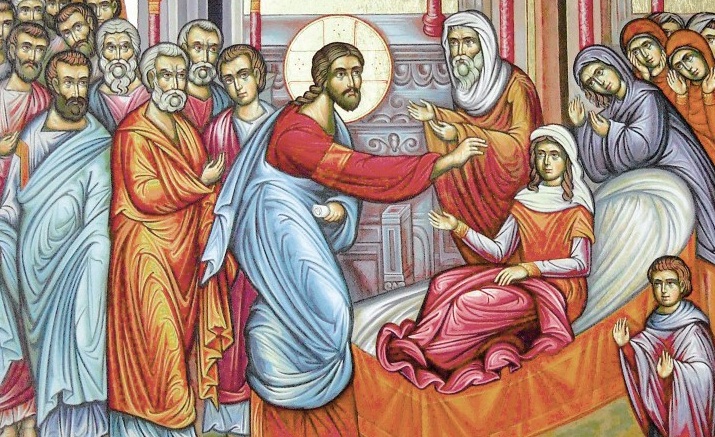 Evanghelia Duminicii a 24-a după Rusalii, ne arată că mai-marele sinagogii din Capernaum, pe nume Iair, avea o fiică de doisprezece ani, care se zbătea între viaţă şi moarte. Aceasta era singurul copil pe care îl avea Iair. Auzind el de Mântuitorul Iisus Hristos că a vindecat o mulţime de bolnavi, şi-a făcut loc printre cei care-L împresurau pe Iisus, a îngenuncheat la picioarele Lui, i-a spus durerea sa şi L-a rugat să meargă la casa lui pentru a o vindeca pe fiica sa grav bolnavă. Putem vedea că Iair avea, într-o anumită măsură, credinţă în Hristos, deoarece l-a chemat pe Domnul să vină la casa lui şi să-şi pună mâna Sa deasupra fiicei sale. Credinţa lui, aşadar, avea ceva trupesc, atunci când spunea: «Pune mâna Ta peste ea», deci, Iair cerea de la Hristos un fel tangibil de vindecare, de parcă ar fi avut Cuvântul Lui Hristos mai puţină putere decât mâna Sa, de parcă glasul care a liniştit furtuna şi a scos demonii din oamenii îndrăciţi şi l-a înviat pe Lazăr cel de patru zile mort şi îngropat, n-ar fi putut s-o învieze pe copila lui Iair la fel de bine ca şi mâna Sa! Totuşi, Domnul a fost preamilostiv şi nu l-a lipsit pe îndureratul părinte de grabnicul Său ajutor, chiar dacă pare destul de evident că tocmai credinţa acestuia era în suferinţă! Iar, pe drum s-a săvârşit o minune asupra unei femei a cărei credinţă era mai mare decât a lui Iair, o minune care l-a încredinţat pe Iair că Hristos Domnul vindecă, nu doar mâna Lui! Pentru că în orice fel s-ar apropia cineva de Hristos, cu siguranţă că se tămăduieşte! Deci, iată că înainte de a ajunge Iisus la casa unde se afla fiica bolnavă a lui Iair, în faţa Lui a apărut o altă persoană suferindă şi întristată, o femeie bolnavă de doisprezece ani de scurgere de sânge, care cheltuise toată averea sa cu medicii, dar nu s-a vindecat. Această femeie s-a atins de haina Lui Iisus pe furiş, venind smerită şi plină de credinţă. În momentul când s-a atins de Iisus, ea s-a vindecat, dar, imediat, Iisus a întrebat: „Cine este cel ce s-a atins de Mine?«. Atunci, toţi tăgăduind, Petru şi ceilalţi care erau cu El, au zis: «Învăţătorule, mulţimile Te îmbulzesc şi te strâmtorează şi Tu zici: Cine este cel ce s-a atins de Mine?». Iar Iisus a zis: „S-a atins de Mine cineva. Căci am simţit o putere care a ieşit din Mine«. Dar, de ce a întreabat Domnul? El ştia bine cine s-a atins de El, însă, Mântuitorul întreabă ca să ne arate credinţa femeii care s-a vindecat, ca să întărească pentru totdeauna credinţa în ea şi în ceilalţi oameni, ca să vădească dumnezeiasca Lui putere tuturor celor atunci de faţă şi nouă tuturor care suntem azi şi mai ales celor care vor fi mâine! Arătând înaintea tuturor credinţa femeii, Domnul a vrut să întărească şi credinţa lui Iair, să-i arate acestuia că nu e nevoie să-i ceară să meargă acasă la dânsul şi să-şi pună mâna peste fiica sa! Domnul are putere, nu numai prin punerea mâinilor, ci, El lucrează prin atingerea hainei, ca şi a mâinii, de departe ca şi de aproape, în drum ca şi în casă.