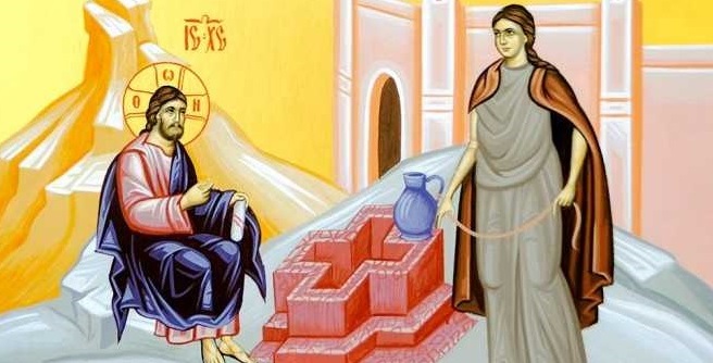 Aşadar, dialogul de la Fântâna lui Iacov, dintre Mântuitorul Iisus Hristos şi Femeia Samarineancă, ne pune pe gânduri pe fiecare dintre noi, pentru că, în cele din urmă, fiecare dintre noi aşteaptă întâlnirea cu Dumnezeu, iar samarinenii, cum se arată în cărţile sfinte, de cele mai multe ori erau folosiţi ca exemple de oameni care se întorc la Dumnezeu, pentru că toţi făceau parte din acea societate de oameni nu tocmai înghiţiţi de iudei, popor care se amestecase cu alte popoare, lăsând la o parte Legea şi închinarea la Ierusalim, cum o şi subliniază chiar Samarineanca, fiindcă Samaria era considerat un pământ pe care locuiau mai mult fiinţe satanice, decât oamenii lui Dumnezeu, mai ales că femeia însetată era şi desfrânată! Dar, cu toate acestea, Domnul primeşte prin ea harul cel mare al bucuriei de a-i vedea pe oameni întorşi către El, către Cel care este cu adevărat Dumnezeu. Deci, de sete sau de oboseală, Mântuitorul se opreşte la fântâna lui Iacov, săpată de acesta împreună cu fiii săi pentru a-şi sătura de apă animalele şi pentru a-şi stâmpăra setea el, dimpreună cu fiii săi. Acesta era un loc istoric, un loc la care evreii ţineau mult, dar, iată, un loc care prin geografia lui ţinea mai mult de Samaria şi samarinenii credeau în Vechiul Testament, având conştiinţa că ei ţin de poporul lui Israel. Domnul îi vorbeşte despre lucruri înalte femeii, cu toată oboseala drumului şi cu toată însetarea, iar cea căreia Hristos îi vorbeşte este una dintre femeile obişnuite ale Samariei. Nu e o credincioasă, care a trăit pe lângă Templu, nu e o femeie citită, probabil, sau în nici un caz, în ceea ce privea Legea, pentru că femeile nu prea se apropiau de Tora, adică de Carte, de Profeţi şi de celelalte cărţi ale Vechiului Testament. Aşadar, Domnul îi cere apă, iar femeia se grăbeşte oarecum să-L persifleze, am spune noi azi, mai ales că ea, lângă fântână, nu poate gândi decât la apa care-i stătea la îndemână. După unele schimburi de cuvinte, când femeia simţise în puterea cuvântului Lui Hristos ceva deosebit, prin care El îi spune: “Oricine bea din apa aceasta va înseta iarăşi; dar cel ce va bea din apa pe care i-o voi da Eu se va face în el izvor de apă curgătoare spre viaţa veşnică”, iată-ne, cu adevărat, în faţa «apei celei vii», care izvorăşte din noi, «apa cea vie» pe care Domnul ne-o dăruieşte, murind şi înviind cu El în apa cea vie a Botezului!