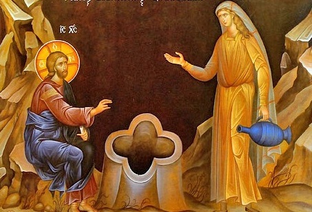 Aşadar, Evanghelia celei de-a cincea Duminici a Paştilor, a Samarinencei (Ioan 4, 5-42) este o frumoasă ilustrare a faptului că în tradiţia liturgică universală, atât în Răsărit, cât şi în Apus, timpul pascal are două perioade: prima parte este o prelungire a sărbătorii Paştelui, cea de-a doua anunţă Cincizecimea şi are în centru taina apei, unul dintre simbolurile persoanei şi economiei Sfântului Duh. Domnul Iisus Hristos părăseşte brusc Iudeea, pentru a merge în Galileea şi trebuie să treacă prin Samaria, când face o oprire către prânz la Sichem, şi în timp ce apostolii pleacă să caute merinde, se întâmplă ceva minunat şi neaşteptat, anume, întâlnirea cu o femeie din partea locului care venise să ia apă de la «puţul lui Iacov», moment în care desluşim faptul că totul este extraordinar în această întâlnire întâmplătoare. Era absolut imposibil ca această femeie să vină către Iisus şi să-i vorbească, pentru că era o femeie care nu putea să se apropie de un rabbi şi îi transmitea întrebările printr-un bărbat, de unde marea mirare a apostolilor de a-L vedea discutând cu o femeie, chiar dacă nu îndrăznesc să-I spună nimic! Deci, cum ea nu poate să vină către El, Iisus vine către ea şi cum ea nu poate să-i vorbească, Iisus îi vorbeşte şi ce îi spune: “Dă-mi să beau”! Lucrul cel mai la îndemână şi mai uzual în plan omenesc, dar extraordinar în plan duhovnicesc, iar Dumezeu cere de băut făpturii Sale! În mintea omenească, aceasta înseamnă o răsturnare a valorilor, deoarece Hristos îi cere Femeii Samarinence apă de băut, pentru că e obosit de drumul făcut pe jos şi pentru că Îi este sete, ca om care a primit să poarte în Trupul său urmarea căderii, dar în această sete a Lui Hristos, putem vedea şi un aspect simbolic, pentru că Lui Dumnezeu Îi este sete şi de mântuirea oamenilor, ceea ce denotă şi admirabila pedagogie a Mântuitorului Hristos, de a prilejui însetarea cu apa vie a credinţei.
