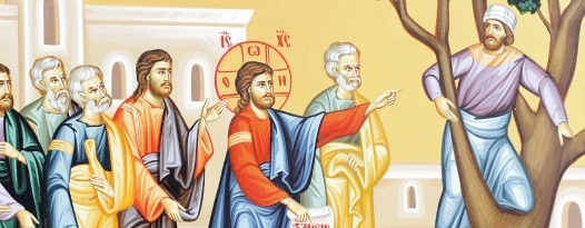 În Duminica a 32-a după Rusalii, a lui Zaheu (Sfântul Evanghelist Luca, în capitolul XIX, 1-19), la Sfânta Evanghelie, ca într-o rostire povățuitoare, se destăinuie înaintea ochilor minții, spre duhovnicească zidire a sufletului care Îl caută pe Dumnezeu, una dintre minunatele pilde care ne învață că acela care vrea să-L vadă cu adevărat pe Mântuitorul Iisus Hristos, trebuie să se ridice în duh deasupra naturii sale umane, deasupra lucrurilor materiale și a bogățiilor lumii acesteia, deoarece Creatorul cerului și al pământului, «al celor văzute și nevăzute», Acela este mult veghetor deasupra naturii și cu mult mai mult pătrunzător decât poate preînchipui mintea umană.