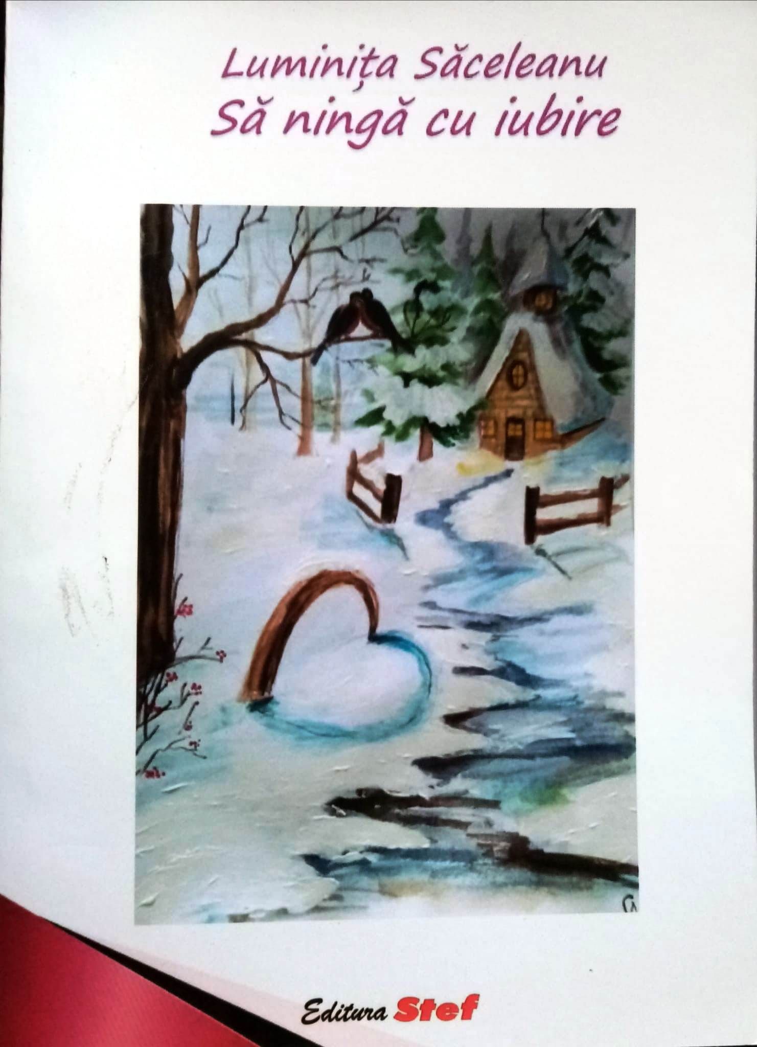 Placheta de versuri ” Să ningă cu iubire” semnată de Luminiţa Săceleanu a apărut la Editura Ştef din Iaşi beneficiind de prefaţa poetei Aurora Luchian şi de ilustraţiile Andreei Creţu.