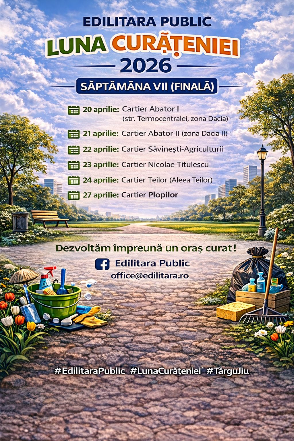 Echipele Edilitara Public S.A. continuă acțiunile din cadrul Lunii Curățeniei în municipiul Târgu Jiu, campania intrând în ultima săptămână de desfășurare.