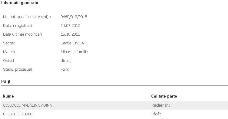 În ceea ce priveşte procesul de divorţ, soţii Ciolocoi au primit o amânare până pe data de 28 octombrie.