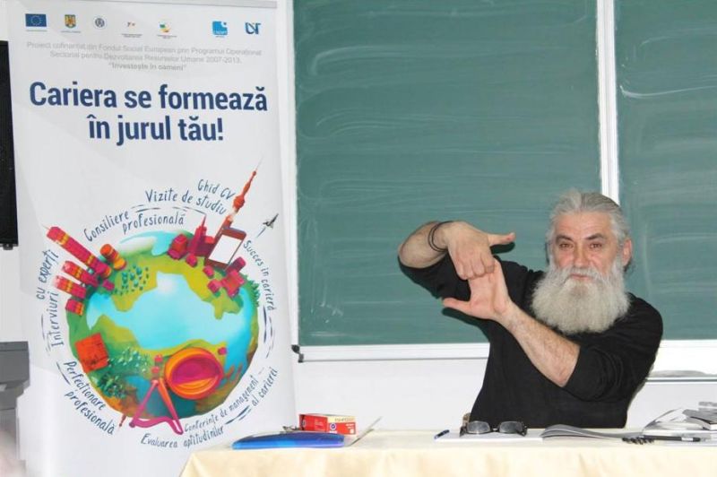 Francisc Bertha, absolvent al Universităţii “Constantin Brâncuşi” din Târgu-Jiu, specializarea Tehnologia construcţiilor de maşini, a debutat în carieră ca inginer mecanic la compania SC ARTEGO SA din Târgu-Jiu. A lucrat tot timpul cu seriozitate, profesionalism şi disciplină, astfel că în scurt timp a ocupat şi funcţii de conducere,  în prezent având un  post important în echipa de conducere a companiei, respectiv inginer şef. A avut mult curaj, foto mihai topescu1iniţiativă şi dorinţă de perfecţionare şi afirmare, astfel că rezultatele muncii au fost recunoscute şi la nivel naţional, acesta fiind şi autor sau coautor la mai multe brevete de invenţie. Consideră că perfecţionarea continuă, responsabilitatea pentru munca prestată, experienţa colegilor de serviciu, disponibilitatea de a lucra peste program şi, nu în ultimul rând, activitatea  şi educaţia pentru muncă primită în familie,  sunt absolut necesare în cariera unui inginer care doreşte să fie împlinit profesional. Mihai Ţopescu creează de peste 30 de ani, a semnat 60.000 de obiecte de artă şi s-ar reprezenta printr-un bol de sticlă. Gorjeanul  Ţopescu expune în Germania, Franţa, Italia şi la marile expoziţii de artă din lume, iar în după amiaza zilei de 26 martie 2015, le-a vorbit studenţilor UCB despre cariera sa. A absolvit Facultatea de Arte Plastice din Cluj Napoca ca şef de promoţie, iar în 1981 a devenit designerul Fabricii de Sticlă din Târgu-Jiu. Şi-a practicat meseria cu pasiune şi dăruire, în spiritul lucrului bine făcut, sub amprenta educaţiei primite în şcolile din Ardeal. Dornic permanent de perfecţionare, a urmat ulterior cursurile prestigioasei Academii de Arte de la Viena.  În 1994 şi-a început propria afacere prin înfiinţarea unui atelier de sticlărie. Artistul de talie mondială Mihai Ţopescu, persoană cu o imaginaţie şi creativitate de excepţie, s-a dedicat acestui domeniu realizând obiecte de mare rafinament, cu geometrie, culori şi sunete ce îndeamnă la reflecţie. Arta sticlei a evoluat mereu la Ţopescu, iar misterul şi cromatica lucrărilor au sedus ochii privitorilor, garantându-i o participare constantă la Bienala de Artă de la Veneţia, Oscarul artiştilor plastici. Şi-a regizat prezentarea în faţa studenţilor, proiectându-si filmul „Anatomy of Glass”, inspirat din pictura celebră a lui Rembrandt,” Lecţia de anatomie a doctorului Tulp” şi le-a vorbit cu realism despre provocările constante din viaţa oricărui artist.