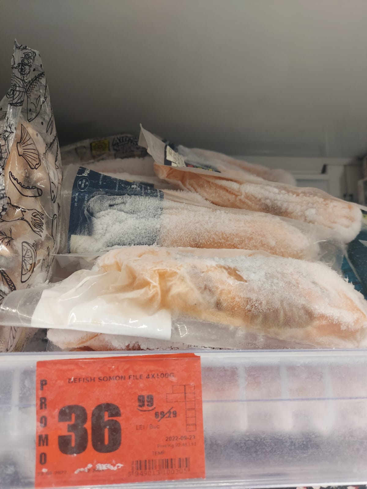 - comercializarea unor produse congelate cu exces de gheață și modificări organoleptice;