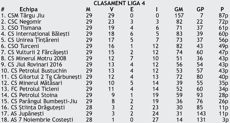 Fotbalul județean din Gorj și-a disputat, în weekend, etapa a 29-a din Liga 4.