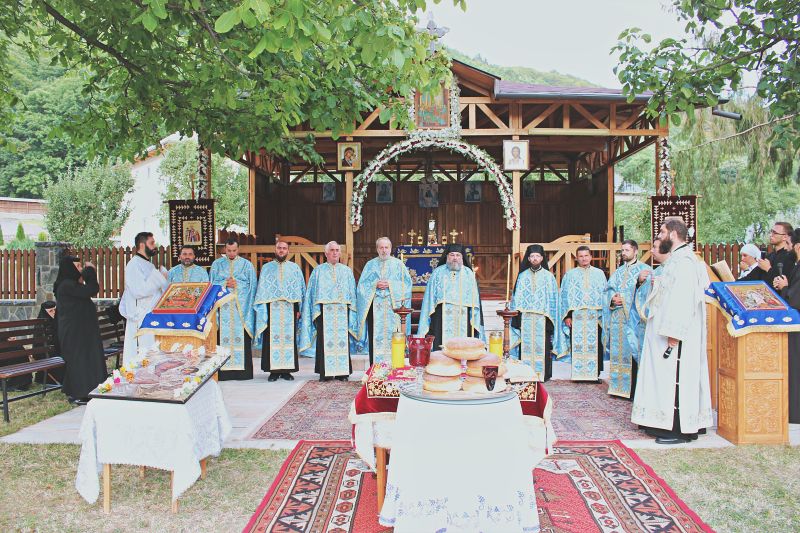 Adormire lumea nu ai părăsit, de Dumnezeu Născătoare, mutatu-te-ai la Viaţă, fiind Maica Vieţii şi cu rugăciunile tale, izbăveşte din moarte sufletele noastre»! Pentru mame este exemplul de purtare de grijă faţă de copii, pentru că sunt multe momente de încercare şi de ispită! Să privim măicuţele acestea care slujesc la mănăstire şi care zi de zi păstrează rânduiala mănăstirii, a rugăciunii, pentru că vă deschid dumneavoastră biserica şi, în cele din urmă, vă îndrumă pe calea aceasta a Maicii Domnului, care în cei doisprezece ani a stat la templu! E bine să punctăm virtuţile Maicii Domnului, care sunt ascultarea şi smerenia, pentru că evlavia poporului român creştin pentru Maica Domnului este mare, iar milioane şi milioane de oameni sărbătoresc acest nume frumos de Maria, milioane şi milioane de oameni şi-au îndreptat astăzi paşii către bisericile noastre ortodoxe şi către mănăstirile binecuvântate de Dumnezeu! Este un lucru care arată evlavia credincioşilor faţă de Maica Domnului! Fiecare mănăstire din Patriarhia Română are o sărbătoare legată de Maica Domnului! De aceea, în mintea şi în sufletul nostru, să ascultăm de porunca Lui Dumnezeu, să ascultăm îndemnul care spune că fericiţi sunt cei care ascultă, care păzesc şi care împlinesc Cuvântul Lui Dumnezeu, care ascultă de Maica Domnului şi de sfinţii noştri, pentru că toţi ne vor fi ajutor în această «călătorie» a vieţii noastre pământeşti, pentru Împărăţia Lui Dumnezeu, Amin”! La organizarea sărbătorii şi la buna ei desfăşurare au contribuit obştea de măicuţe truditoare conduse de către Maica Stareţă Spiridona Tăbăcaru Monahia, echipe autorizate de ordine publică alcătuite din poliţişti şi jandarmi, oameni dăruitori şi binevoitori, cu inima generoasă, care le-au oferit credincioşilor pachete cu alimente întru îndestulare, iar o parte dintre credincioşi au fost invitaţi la o agapă frăţească în trapeza mănăstirii.