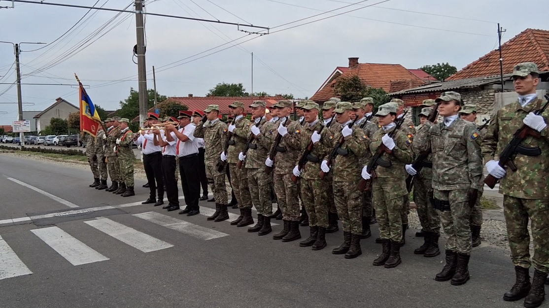 Evenimentul a debutat cu un ceremonial militar de întâmpinare a oficialităților Județului Gorj. La semnalul sonor „Atențiune” intonat la trompetă de domnul Feregan Tony, și pe ritmul muzicii „Marșului de întâmpinare” cântat de Fanfara „Armonia” din Târgu Jiu, târgujianca Raluca Popescu, Lt. col. de geniu, comandantul Batalionului 24 Infanterie „Ecaterina Teodoroiu“ de la Târgu Jiu, înființat la 1 august 2023, a întâmpinat pe domnul subprefect de Gorj, Aurelian Gârbaciu, însoțit de Constantina-Anca BORDUȘANU, vicepreședinte al Consiliului Județean Gorj. Domnul subprefect însoțit de doamna comandant au salutat Drapelul de Luptă al Regimentului și au trecut în revistă Garda de Onoare, au salutat militarii și au luat loc în dispozitiv alături de celelalte autorități județene și locale, reprezentanți ai partidelor politice și ai filialelor Cultul Eroilor „Regina Maria” (col. rtr. Gigi Bușe, lt. col. rtr. Ovidiu-Gabriel Ghindă, prof. Grigore Haidău, dirig. Viorica Ionescu și ing. Vasile Ionescu), și ANCMRR Gorj condusă de col. (r.) Emanuel Bărbulescu, președintele filialei.