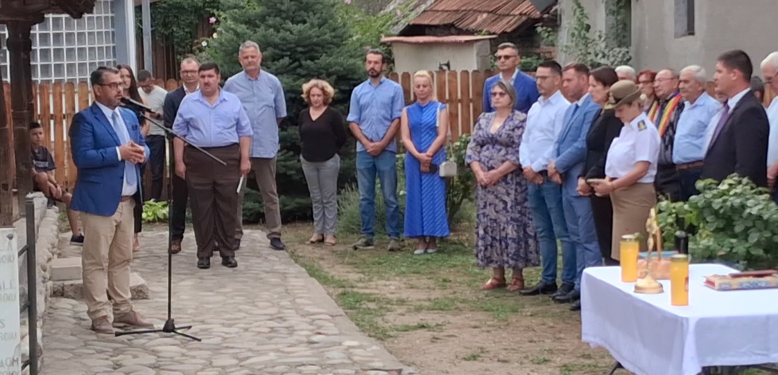 Au urmat alocuțiuni evocatoare rostite de reprezentanții autorităților. Primul a fost domnul subprefect de Gorj, Aurelian Gârbaciu, care, după ce a salutat pe cei prezenți a spus: „Mă bucur să fim în această dimineață aici, la rădăcini, în locul de unde Ecaterina Teodoroiu, Eroina noastră de la Jiu, a apărut pe lume. De aici și-a luat puterea și a plecat în viață pentru că a avut un țel. Motivul pentru care ne-am adunat astăzi aici, la 108 ani de când eroina noastră a căzut în Primul Război Mondial, ne demonstrează, încă o dată, că țara asta are repere, are valori și e important ca noi cei care suntem astăzi în această călătorie să le dăm mai departe. Să le arătăm celor de lângă noi, copiilor noștri, nepoților noștri și să arătăm că se poate. Se spune că un om moare definitiv atunci când nu se mai vorbește despre el și iată eroina noastră, așa cum este firesc să se întâmple, trăiește de 108 ani de când a urcat la Domnul, în conștiința și în sufletele noastre”. La final, a urat viață lungă Batalionului 24 Infanterie „Ecaterina Teodoroiu“ Târgu Jiu, înființat la 1 august 2023, și ne-a invitat la Mausoleul Ecaterinei, din piața Prefecturii, la ora 12:00, pentru depuneri de coroane.