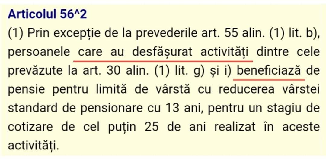 În legea 197/2021 scrie negru pe alb și foarte clar că persoanele care AU DESFĂȘURAT activități de producție, mentenanță și asimilate din unitățile de producție a energiei electrice în termocentralele pe bază de cărbune, incluzând și unitățile de extracție a cărbunelui, pentru personalul implicat direct și nemijlocit în utilizarea procedeelor și utilajelor specifice producției energiei electrice și extracției cărbunelui, BENEFICIAZĂ de pensie pentru limită de vârstă cu reducerea vârstei standard de pensionare cu 13 ani, pentru un stagiu de cotizare de cel puțin 25 de ani realizat în aceste activități!