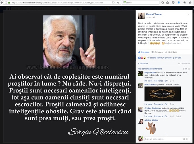 Viitorul fin al cuplului Maria Constantin și Marcel Toader a transmis și el un mesaj pentru cei care îl vor cununa. „Nimic nu este întâmplător în viață, iar în calea noastră au apărut doi oameni minunați, nașii noștri, Maria și Marcel Toader. Am fost uimit că încă mai există oameni cu un suflet atât de cald și dornici să împărtășească iubirea lor și celorlalți”, a comentat, pe facebook, viitorul fin al familiei Toader.