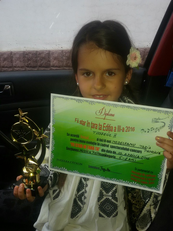 săptămâni mai târziu a participat la Festivalul ”Fii star în țara ta”, de unde s-a întors cu un trofeu. Un alt trofeu l-a obținut tot săptămânile trecute, în urma participării la concursul interjudețean ”Suflet de artist”. În săptămânile următoare va participa la alte festivaluri și concursuri la Vâlcea, Bacău și Constanța, de unde, de asemenea, speră să se întoarcă cu premii.