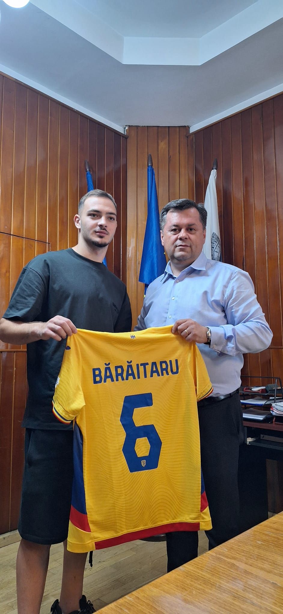 Mario Bărăitaru, unul dintre cei mai promițători tineri fotbaliști ai României și titular în echipa națională Under 19, a făcut joi o vizită la Primăria Municipiului Târgu Jiu.