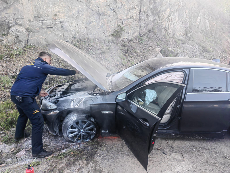 Femeia, de loc din Motru, a observat primele flăcări ieșind de sub capotă și a coborât repede din autoturism. Norocul său a fost că prin zonă trecea un echipaj al Poliției de Frontieră Mehedinți, care a încercat să stingă flăcările cu câteva extinctoare. Focul s-a propagat însă cu repeziciune, dar polițiștii au reușit să o liniștească pe femeia care suferise un atac de panică. Ulterior, au venit pompieri care au stins flăcările, mașina fiind mistuită complet în incendiu.