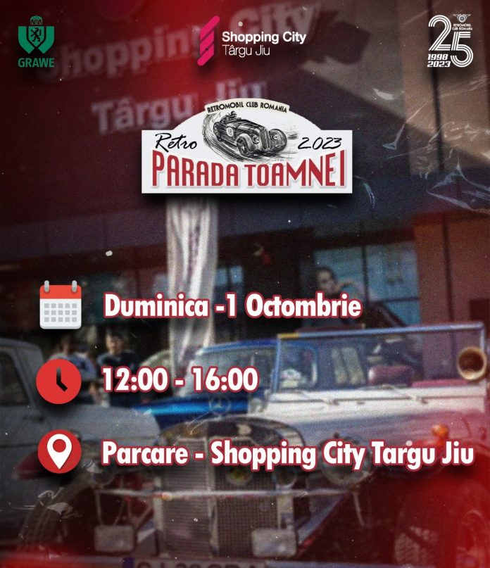 Modele de mașini retro te așteaptă să le admiri în parcarea mall-ului din Târgu Jiu. Evenimentul este organizat pe 1 octombrie, între orele 12.00 – 16.00, de către Retromobil – filiala Gorj.