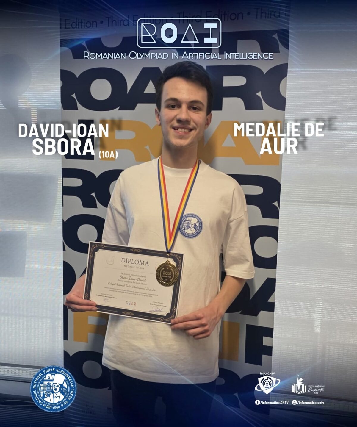 „Felicitări elevului Ioan-David Sbora, clasa a X-a (Colegiul Național „Tudor Vladimirescu” din Târgu Jiu) pentru rezultatul remarcabil obținut la etapa națională a Romanian Olympiad in Artificial Intelligence (ROAI) – Medalie de Aur (locul 5)! Rezultatele lui Ioan-David confirmă, încă o dată, că munca susținută, seriozitatea și pasiunea pentru performanță duc la excelență. Mult succes în competițiile viitoare! Inspectoratul Școlar Județean Gorj susține și promovează valorile autentice!” a anunțat Inspectoratul Școlar Județean Gorj.