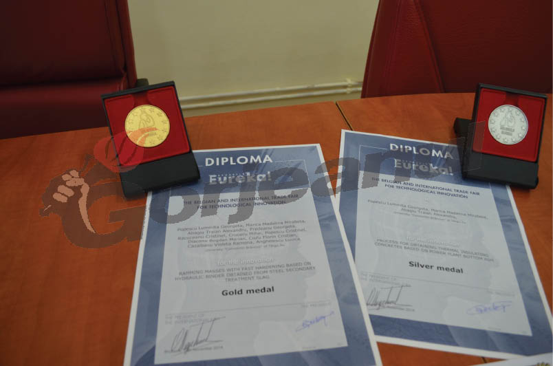 BAZĂ DE LIANT HIDRAULIC OBŢINUT DIN ZGURĂ DE TRATAMENT SECUNDAR AL OŢELULUI”, titular: Universitatea „Constantin Brâncuşi” din Târgu-Jiu, Autori/inventatori: Popescu Luminiţa Georgeta, Marica Mădălina Mirabela, Abagiu Traian Alexandru, Predeanu Georgeta, Racoceanu Cristinel, Cruceru Mihai, Popescu Cristinel, Diaconu Bogdan Marian, Ciofu Florin Cristian, Cazalbaşu Violeta Ramona, Anghelescu Lucica) a obţinut Medalie de Aur şi Cererea de Brevet „PROCEDEU DE OBŢINERE A BETOANELOR TERMOIZOLATOARE PE BAZĂ DE CENUŞĂ GREA DE TERMOCENTRALĂ” titular: Universitatea „Constantin Brâncuşi” din Târgu-Jiu, Autori/inventatori: Popescu Luminiţa Georgeta, Marica Mădălina Mirabela, Abagiu Traian Alexandru, Predeanu Georgeta, Racoceanu Cristinel, Cruceru Mihai, Popescu Cristinel, Diaconu Bogdan Marian, Ciofu Florin Cristian, Cazalbasu Violeta Ramona, Anghelescu Lucica a obţinut Medalie de argint”, a confirmat Luminiţa Popescu, rectorul UCB Târgu-Jiu.