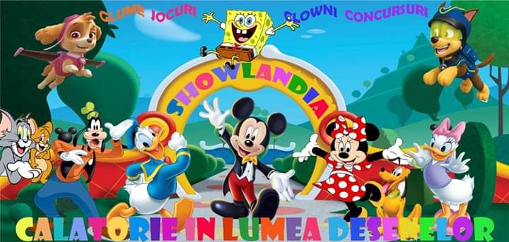 Duminică, 12 mai 2019, orele 14.00, 16.00 și 18.00, Showlandia prezintă la Târgu-Jiu spectacolul ,,Călătorie în lumea desenelor”.