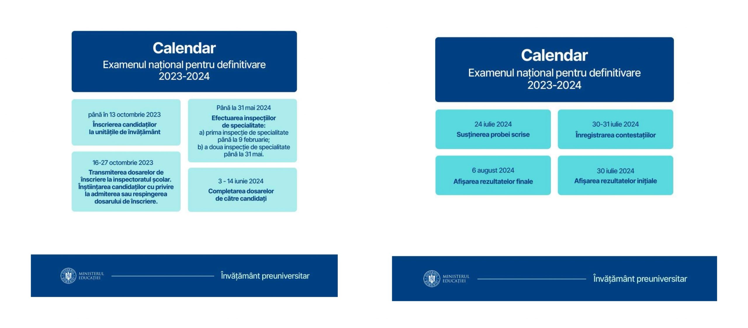 Ministerul Educației a anunțat faptul că a fost semnat Ordinul privind aprobarea Calendarului de organizare și desfășurare a examenului național pentru definitivare în învățământul preuniversitar, în anul școlar 2023-2024.
