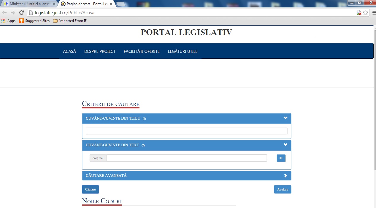 Ministerul Justitiei (MJ) anunta miercuri, intr-un comunicat, lansarea oficiala a Portalului legislativ, o aplicatie electronica de legislatie nationala care va permite accesul gratuit al cetatenilor si al institutiilor publice si private la o baza de date legislativa nationala, gestionata de Ministerul Justitiei.