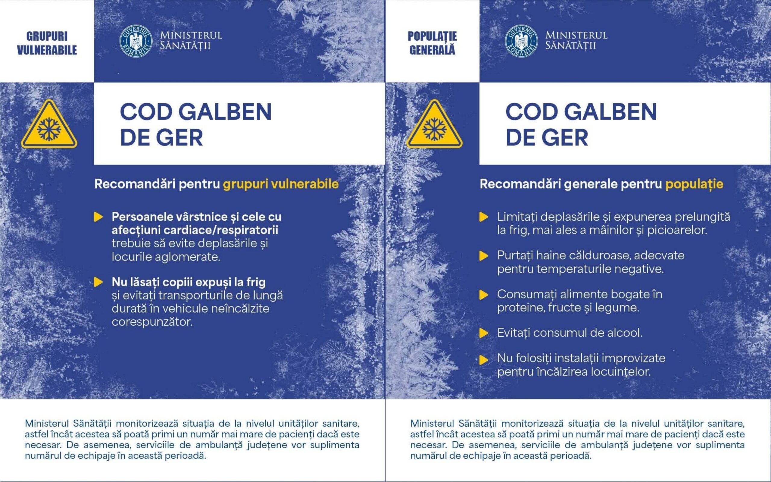 Totodată, autoritățile atrag atenția asupra încălzirii corespunzătoare a locuințelor și avertizează populația să nu folosească instalații improvizate, care pot duce la intoxicații cu monoxid de carbon.