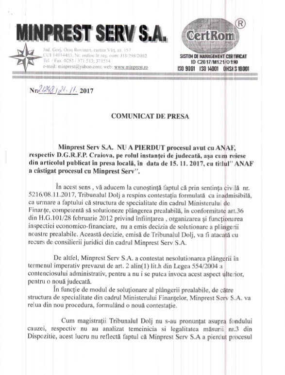 Minprest nu a pierdut procesul cu ANAF!