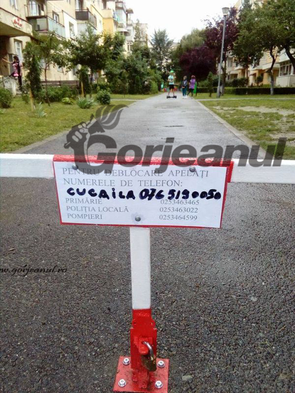Când vrei probleme ți le cauți singur, cam așa face primarul din Bumbești-Jiu, Constantin Bobaru decizând cu de la sine putere să blocheze, vineri, un drum public din oraș, pentru că i-au solicitat asta niște locatari supărați că mașinile care circulau pe lângă bloc le provocau prea mult zgomot în pensia prea liniștită. Fără să amendeze șoferii care pătrundeau pe aleea lărgită dintre cele două blocuri, fără să someze locatarii ori să avertizeze șoferii că vor fi amendați și fără să ceară semnături pentru a bloca accesul pe alee, edilul liberal a decis să amplaseze la cele două capete ale arterei respective, oricum prevăzute cu semnul interzis, două bariere metalice, închise cu câte un lacăt, lăsând cheile unui locatar pensionar. Autoritățile au grijă, să treacă pe bariere faptul că sepot solicita telefonic cheile respective la “Cucăilă” fără a preciza cine este respectivul, fie la primărie, fie la poliția locală, ori la pompieri.