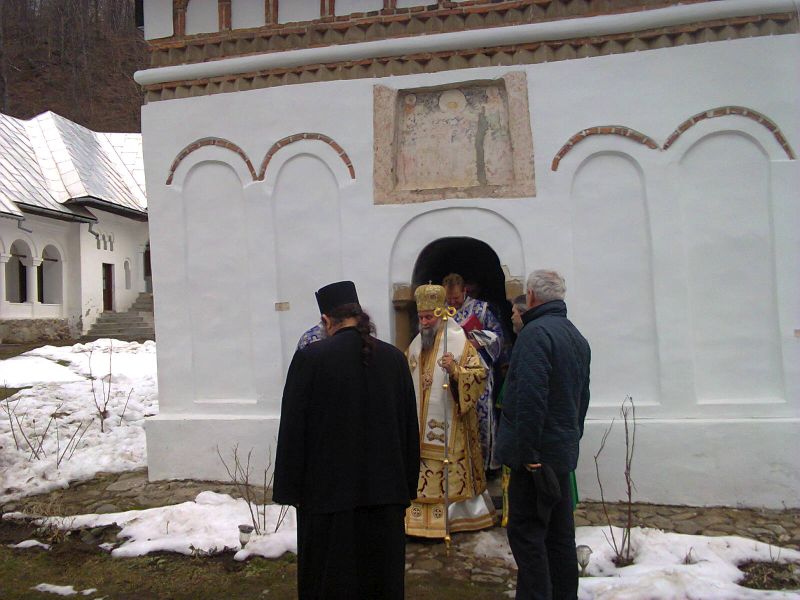 În Duminica Izgonirii lui Adam din Rai (a Lăsatului sec de brânză 22 februarie 2015), Înaltpreasfinţitul Părinte IRINEU, Arhiepiscopul Craiovei şi Mitropolitul Olteniei, împreună cu un sobor de preoți și diaconi a oficiat Sfânta Liturghie la Mănăstirea Crasna(Gorj), sfântă lavră de închinare și rugăciune, temeluită din piatră de râu şi cărămidă în locul celei de lemn, în anul 1636, și terminată la 24 septembrie 1637, de către marele sluger Dumitru Filişteanu din Filiaşi, nepotul marelui ban al Craiovei, Dobromir, şi văr cu doamna Stanca, soţia lui Mihai Viteazul, așa cum se menționează în pisania bisericii de tip bizantin. Ca un element specific al acestui sfânt lăcaș, așa cum ne-a mărturisit starețul mănăstirii, protosinghel Nifon, “putem observa că pereţii nu sunt prea înalți, dar sunt frumos decoraţi cu un brâu de cărămidă sub streaşină şi cu arcuri ce par a se rezema pe o bogată colonadă ce înconjoară biserica, aceasta având o singură turlă octogonală aşezată pe o bază pătrată deasupra naosului. Să mai amintim că aici se află o catapeteasmă din lemn sculptat, considerată a fi printre cele mai frumoase din ţară, înaltă până la boltă, cu o sculptură ornamentală, poleită cu foi de aur, iar naosul şi pronaosul sunt despărţite de un zid înalt” cu deschidere cât o uşă obişnuită.