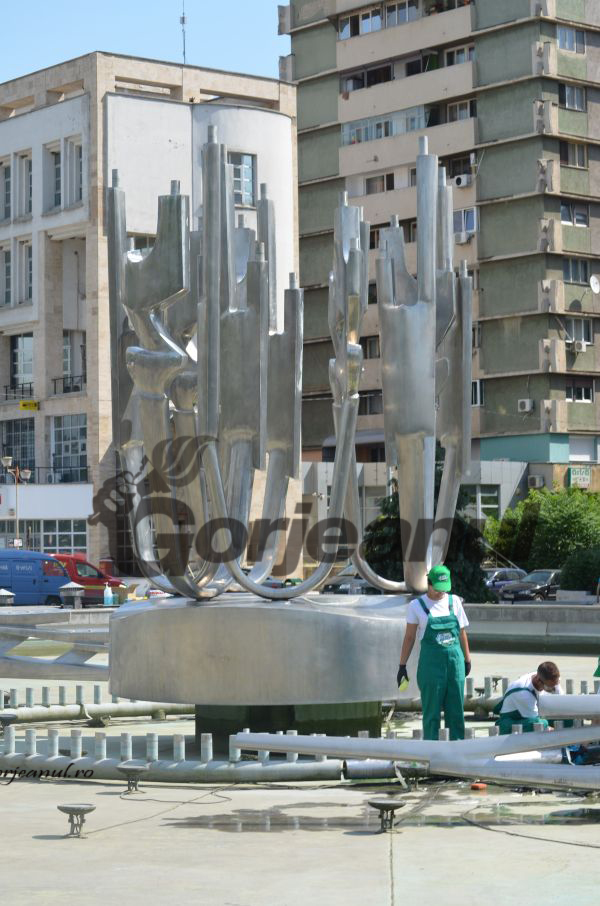 din Drobeta-Turnu Severin și reprezintă o îndrăzneață combinație de apă, lumini, mișcare și inox. Denumit de mulți “al doilea Brâncuși”, Lucaci rămâne, înainte de toate, sculptorul în oțel inoxidabil. Elementele ce definesc sculptura plină de vigoare a artistului sunt materialul -oțel inox inalterabil- vibrațiile luminoase explorând suprafața polizată, mișcarea, sonoritatea, dar și proiectul în sine – cel al unei sculpturi de integrare urbană. În perioada 2007-2009 fântâna a fost reabilitată împreună cu zona de recreere din jurul ei, devenind astfel principalul loc de promenadă al severinenilor, mai ales în zilele călduroase de vară.