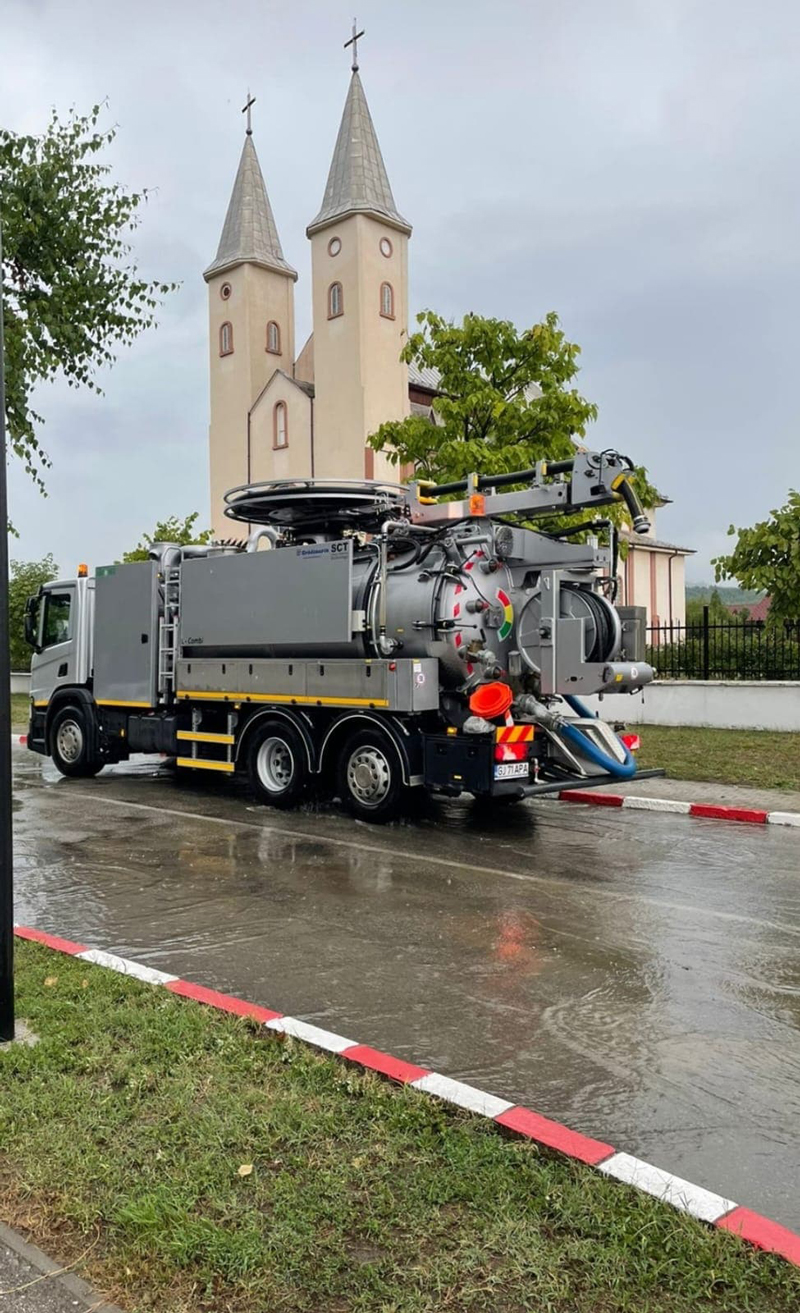 Imediat după ce precipitațiile s-au oprit s-a trecut la desfundarea gurilor de canalizare, încărcate de resturile aduse de ploaie.