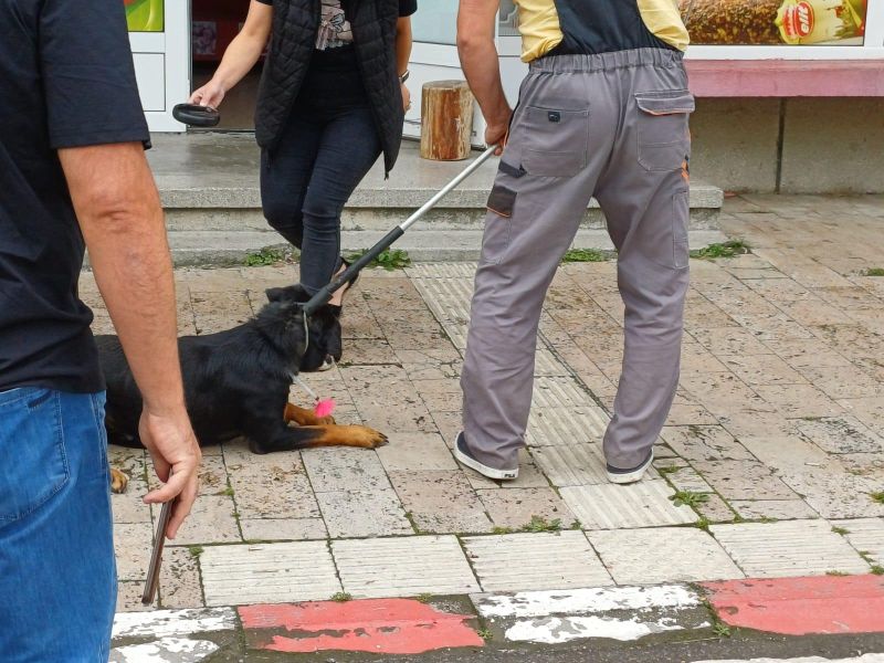Câinele a încercat să îl muște și pe unul dintre muncitorii care vroia să îl îndepărteze, doar că bărbatul purta echipament de protecție și nu a simțit atunci când animalul și-a înfipt colții în hainele groase.