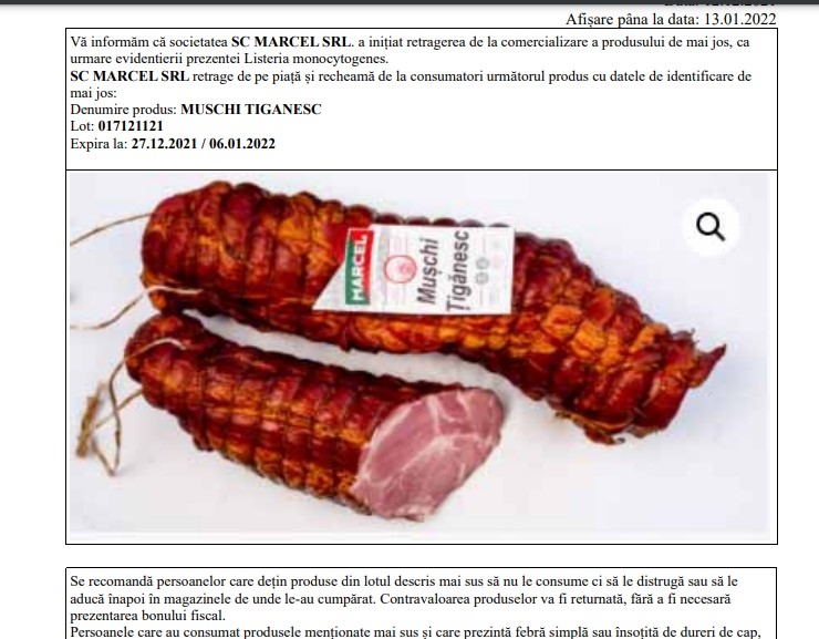Instituția a dispus informarea consumatorilor. „Dacă cetățenii au în dulap, în frigider, aceste două produse contaminate cu Listeria, sunt rugați de îndată să îl readucă în magazin să își primească banii, sau îl arunce de îndată. Menționăm că această bacterie, Listeria monocytogenes, este extrem de periculoasă, este una din cele mai mari provocări ale lumii în acest moment în ceea ce privește bacteriile datorită mobilității pe care o are și datorită ravagiilor pe care le poate face atât la sistemul nervos, cât și la sistemul digestiv prin toxiinfecții alimentare extrem de grave. Ce este important, că această bacterie se poate lupta cu organismul până la 30 de zile, adică este foarte greu să efectuăm și ancheta epidemiologică să ne dăm seama că e de la produsul x pe care l-am mâncat acum trei săptămâni”, a adăugat Mihai Ponea.