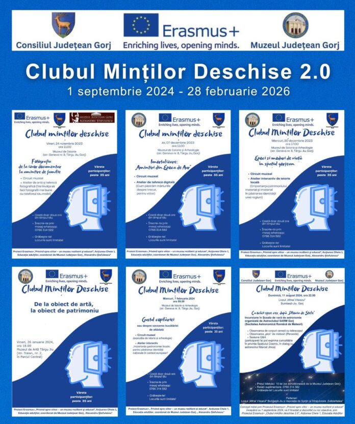 „Clubul minților deschise” intră într-o nouă etapă, la Muzeul Județean Gorj „Alexandru Ștefulescu”, în urma obținerii unei finanțări, prin programul Erasmus+, Acțiunea Cheie 1 – Educația Adulților.