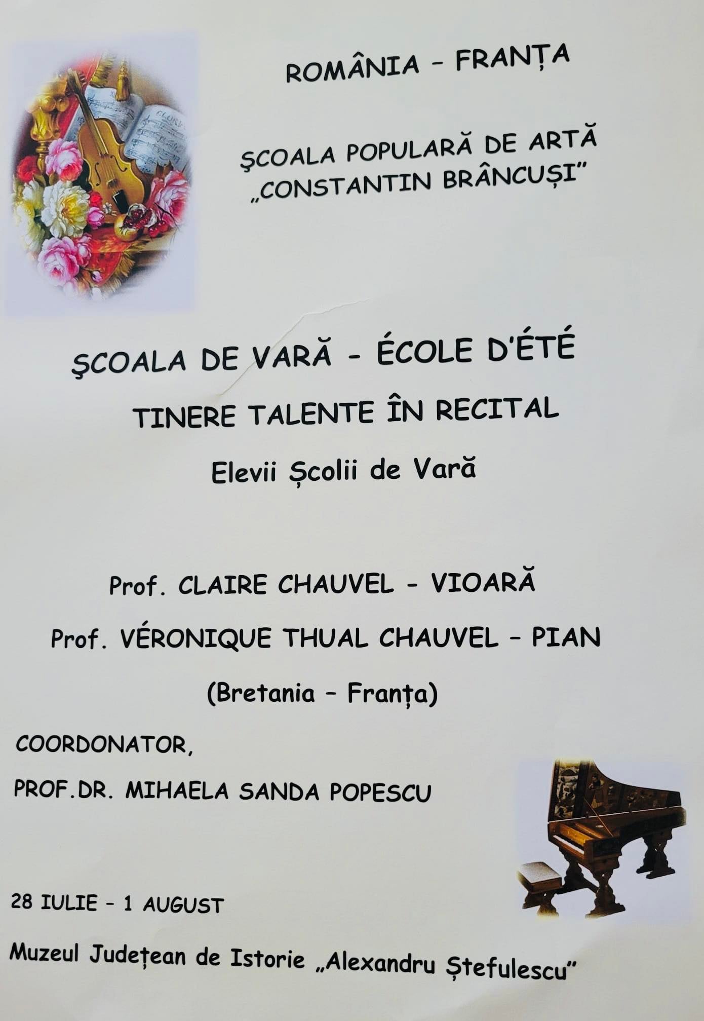 Evenimentul se va încheia vineri, 1 august, cu un spectacol special, susținut de cursanții care au urmat lecțiile de pian și vioară – un moment de emoție, bucurie și aplauze, ce va avea loc tot în incinta Muzeului Județean.