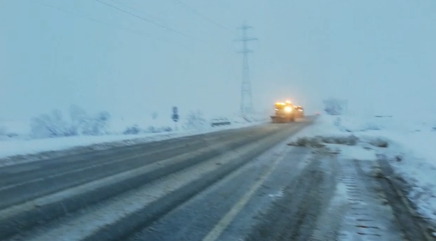 În zonele din județ în care ninge, drumarii au ieșit cu utilajeele eliberând drumurile și împrăștiind materil antiderapant.