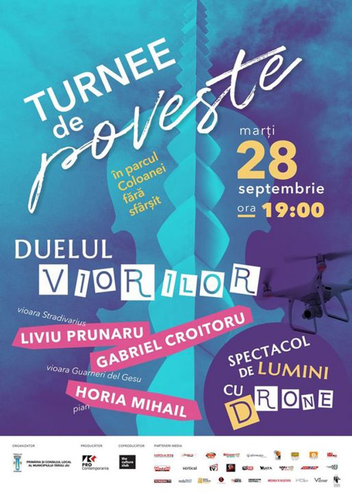 Primăria Târgu-Jiu anunță noi evenimente pentru iubitorii de muzică de calitate. Săptămâna viitoare, în Parcul Coloanei Infinitului, se va desfășura un nou concert din cadrul seriei ,,Turnee de Poveste” – ,,Duelul Viorilor – Stradivarius versus Guarneri”. După concert va fi organizat și un nou spectacol de lumini. ,,Pentru că primul spectacol de lumini a fost foarte bine primit, așa cum am anunțat, organizăm și al doilea eveniment marți, 28 septembrie. La ora 19.00, în Parcul Coloanei Infinitului va începe unul dintre cele mai frumoase spectacole organizate în acest an: concertul ,,Duelul Viorilor – Stradivarius versus Guarneri”, din cadrul seriei Turnee de Poveste la Târgu-Jiu. Pe scenă vor urca Liviu Prunaru – concertmaestrul orchestrei Concertgebouw Amsterdam, care cântă pe vioara Stradivarius Pachoud, și Gabriel Croitoru – solist concertist al Orchestrelor și Corurilor Radio, Filarmonicilor din Cluj-Napoca și Ploiești, care cântă pe vioara Guarneri del Gesu Catedrala (pusă la dispoziție de Muzeul Național „George Enescu”, în al cărui patrimoniu se află), acompaniați de pianistul Horia Mihail. Imediat după concert, începe spectacolul de lumini, de această dată cu mai multe drone și pentru un timp mai îndelungat”, a transmis Marcel Romanescu, primarul municipiului Târgu-Jiu.